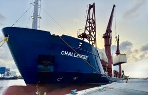 The m/v Challenger. New member of the fleet. Weekly container service.